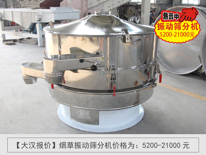 以上就是大漢機械為您帶來的煙草振動篩分機多少錢一臺了, 如果您還有什么問題可在線咨詢客服,大漢機械為您24小時在線服務。