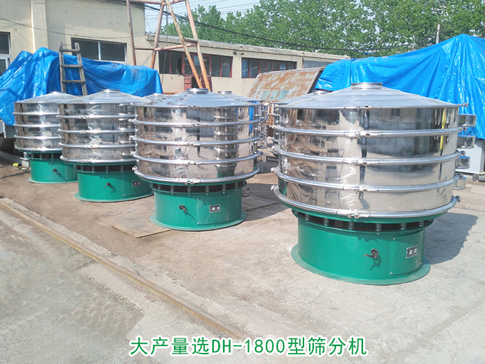 大產(chǎn)量選DH-1800型篩分機:篩分直徑為1720m/m,功率為2.2kw,每小時處理量可達到800kg-1500kg。
