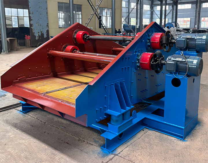 SZZ自定義中心振動(dòng)篩的篩箱由電機(jī)驅(qū)動(dòng)偏心塊旋轉(zhuǎn)產(chǎn)生振動(dòng),偏心塊的旋轉(zhuǎn)使篩箱沿著自定中心軌跡振動(dòng),即篩箱振動(dòng)方向圍繞篩箱自身的中心點(diǎn)進(jìn)行,從而使物料不斷被拋起、松散并通過篩孔完成篩分。